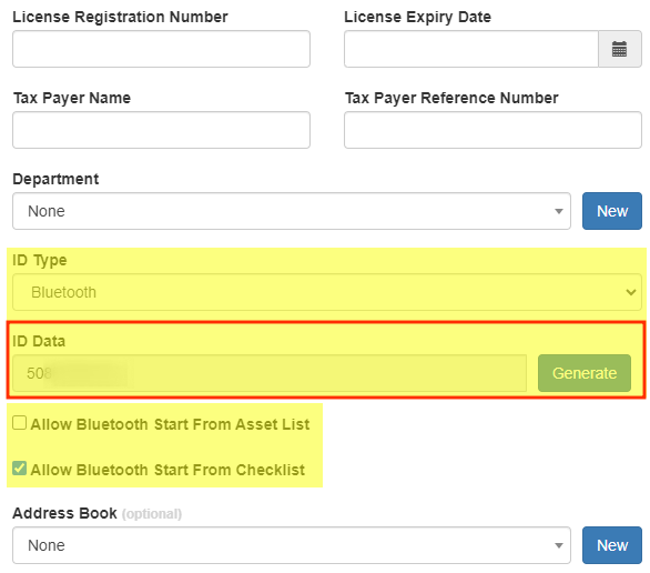 - Select whether to allow Bluetooth Start from Asset List, Checklist, or both.