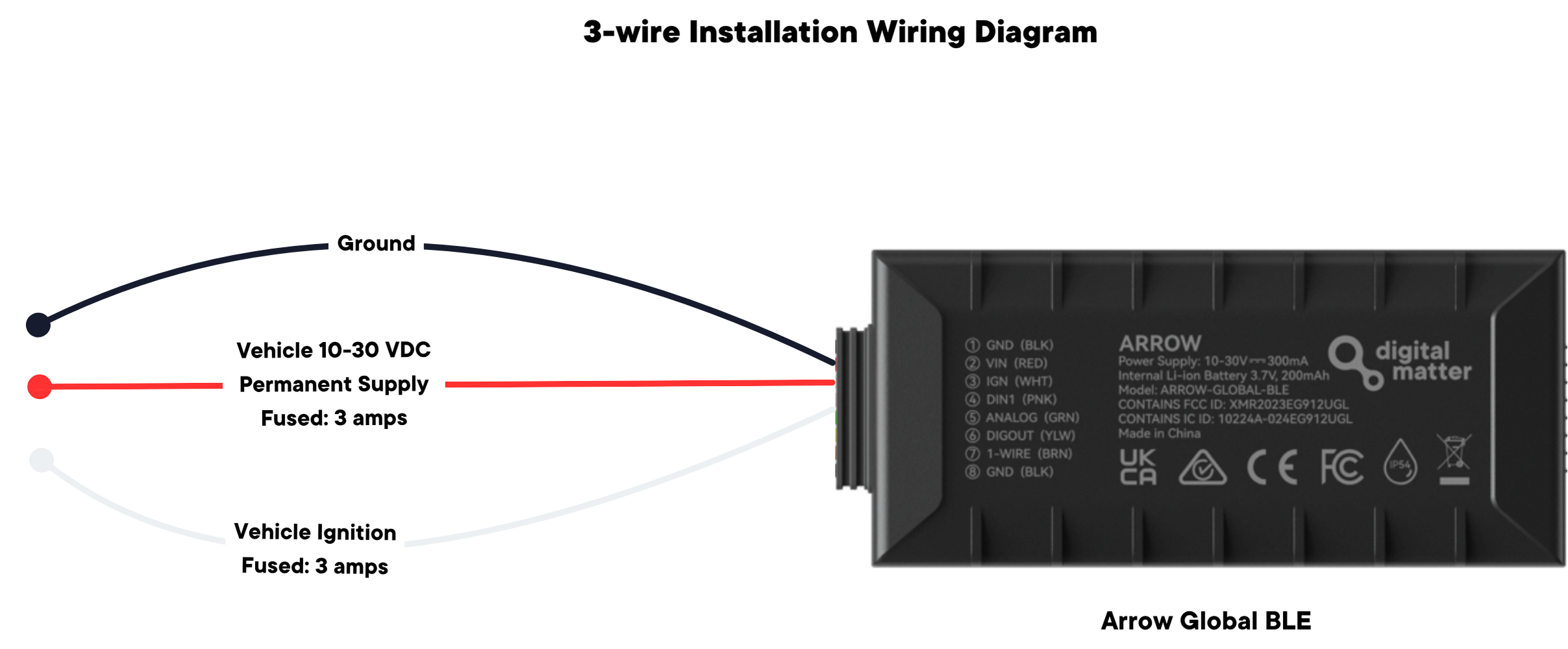 - Connect Red (Wire 2) on the Arrow Global BLE harness to this or the vehicle battery (10 - 30 VDC).